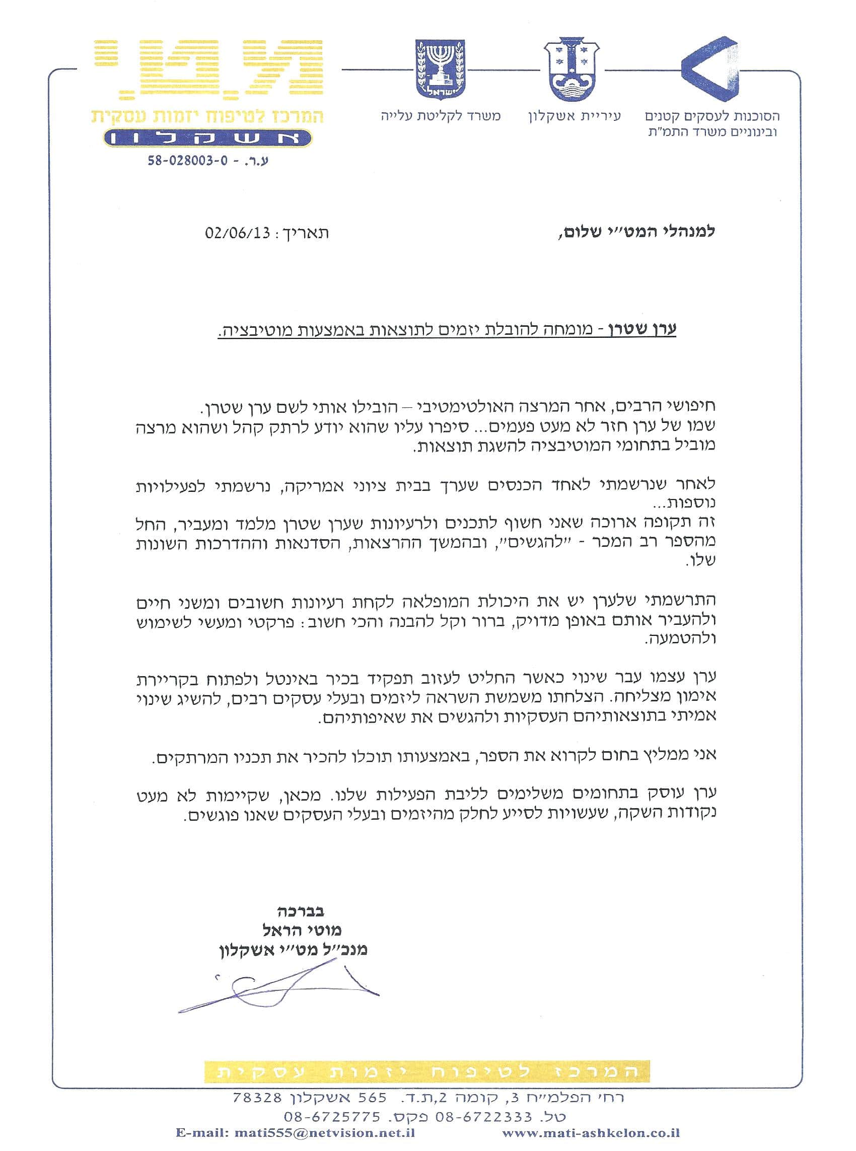 ראה ברכה בספרך וביוזמותיך, ישר כח”. לצפייה במכתב הרשמי