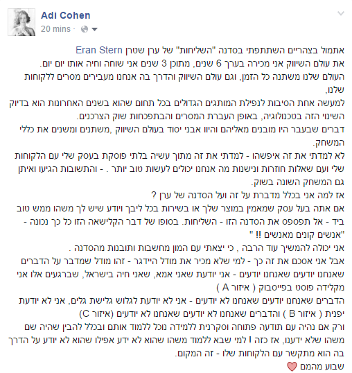 שמי ערן שטרן, והשליחות שלי בעולם הינה לעורר את מנהיגי העולם החדש, כך שיוכלו להביא לביטוי את גדולתם ושליחותם בעולם.